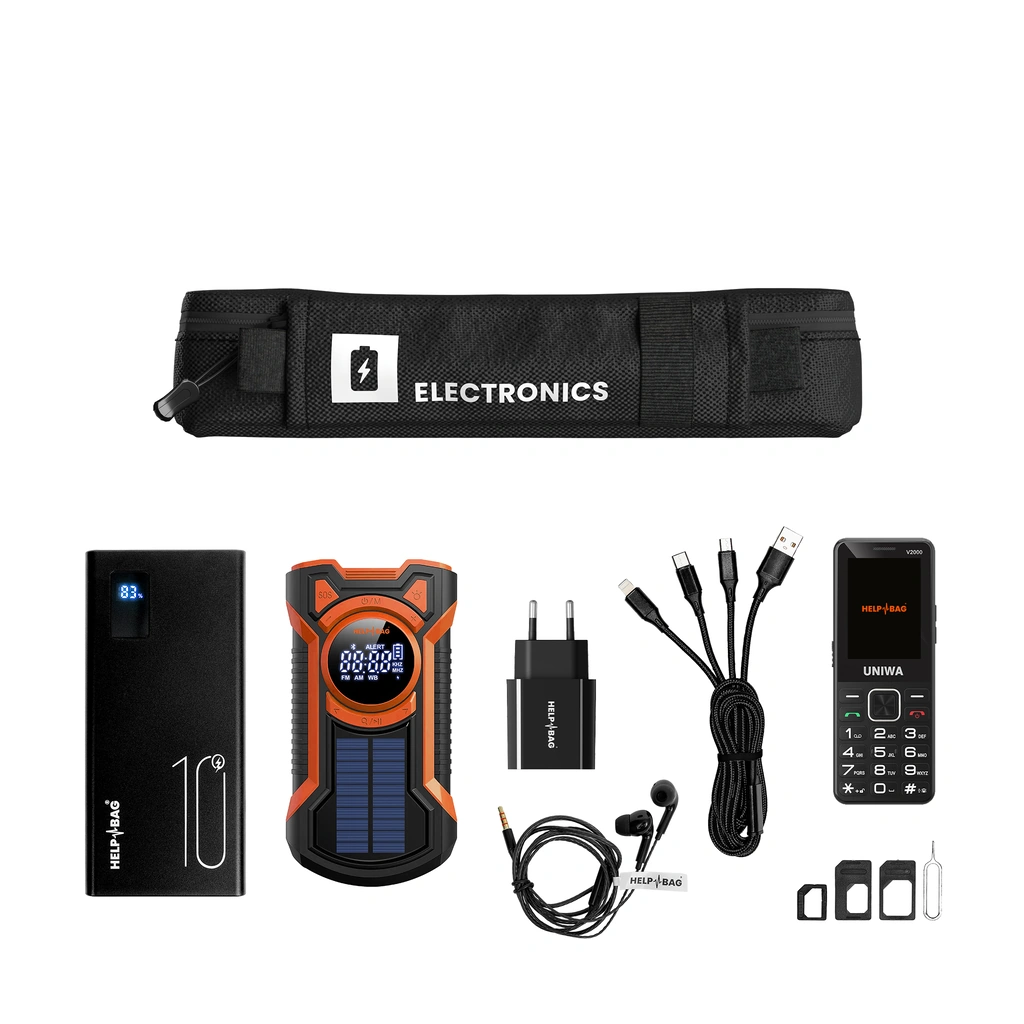 Blackout, flood, evacuation, Help Bag Max Pro is a ready-made emergency kit that will provide light, heat, water and safety for your family in any situation. A capacious backpack, chest and over 100 items divided into 8 modules, each labeled and ready to use. Zero chaos. Zero guesswork. Zero shortages. In case of an emergency, you'll be ready and self-sufficient.